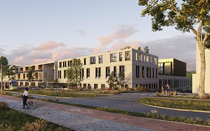 Évolution du bâtiment principal et restructuration du Pôle femme-mère-enfant, urgences, pharmacie et création de nouvelles unités d’hospitalisation du CH de Pau. Ce projet a obtenu le label Bâtiment Durable Nouvelle Aquitaine, niveau bronze.