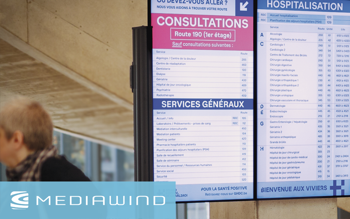 La Clinique Saint-Pierre Ottignies a digitalisé son accueil de consultation avec MEDIAWIND : affichage dynamique, flux ticketing et widget personnalisé pour une communication fluide, une meilleure orientation et une expérience patient optimisée, fidèle à l’image de l’établissement.